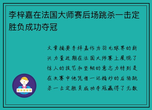 李梓嘉在法国大师赛后场跳杀一击定胜负成功夺冠